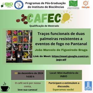 O CAFECO promove encontros acadêmicos com o objetivo de divulgar as pesquisas realizadas por estudantes e professores do INBIO, assim como por pesquisadores de outros locais e áreas do conhecimento. São eventos promovidos pelos quatro Programas de Pós-Graduação do INBIO: